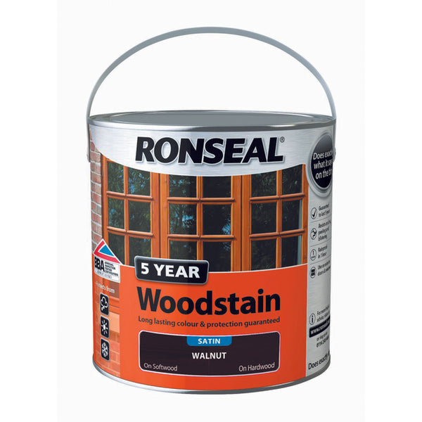 • Ronseal 5 Year 2.5l Woodstain delivers the ultimate protection to exterior woodwork. The unique formula weatherproofs locking out moisture, preventing UV damage and resisting cracking and peeling.