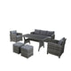 Includes a 3 Seater Sofa, 2 Armchairs, 2 Ottomans with Polywood Table.
