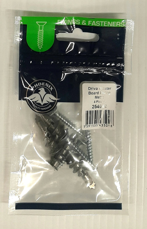 Metal Driva plasterboard plug fixings are easy to use and are strong when inserted into plasterboard.